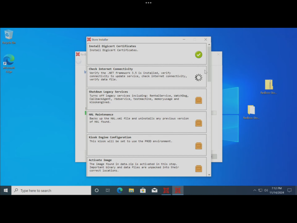 This is the Redbox Store Installer, that seems to get stuck, then about a few minutes then continues with the installation process.