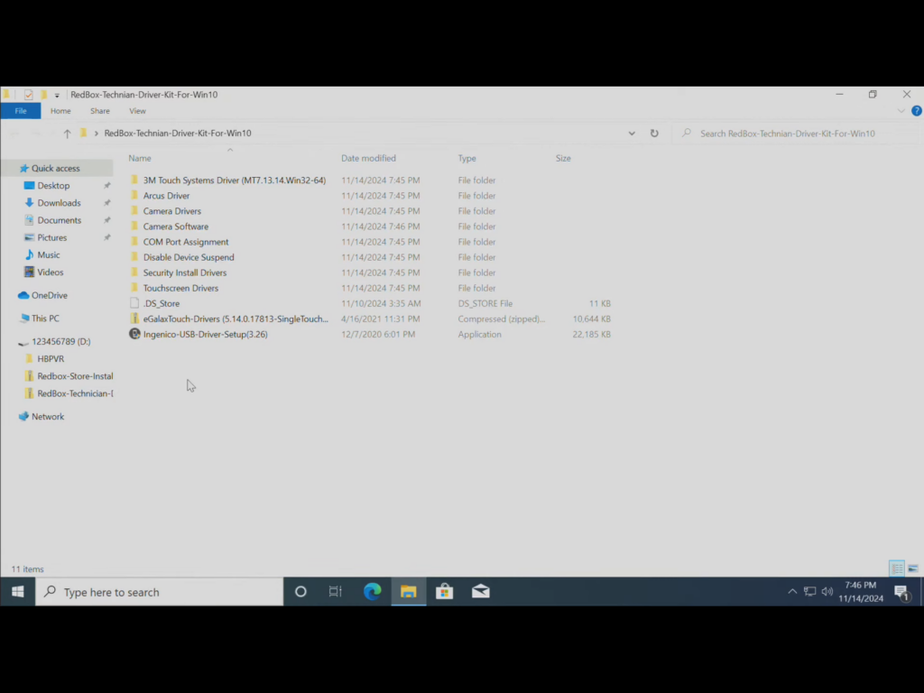 – The technician driver kit just has different drives for the various components they use for the kiosk, such as the touchscreen, I would imagine the carousel that is inside the unit along with the credit card reader. Although I did not see any drivers for the credit card reader that was included in this zip folder.
