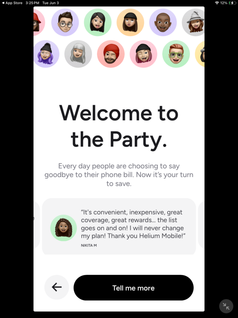 The next series of screenshots that are posted below is just from information about their Service, The only way to advance through this is you have to tap on tell me more, there are three slides. This is slide 1 of 3)