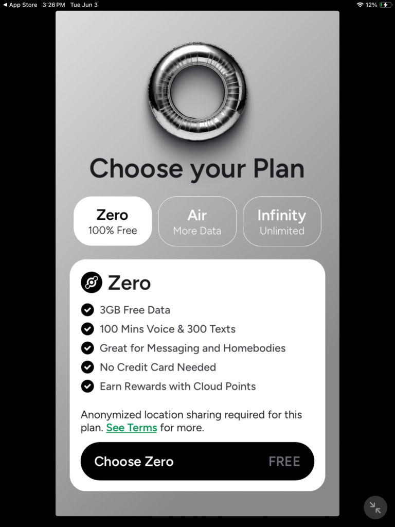 Tap on each of the different plants to see which one is the right one for you, zero is truly free, air and Infinity will cost money, but they offer more.