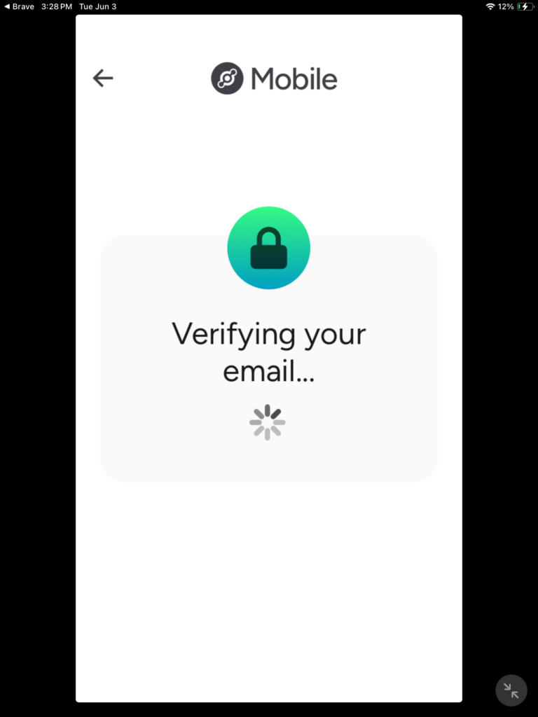 once you click on the activation email you’ll be taking back to the app in which the app will now say verifying your email.