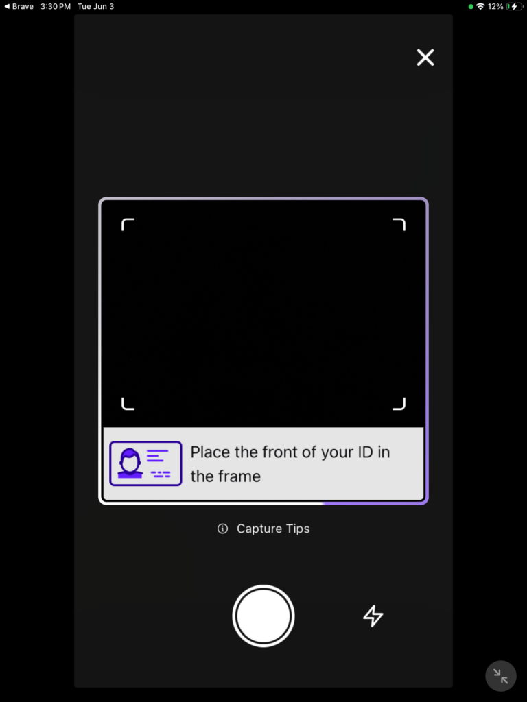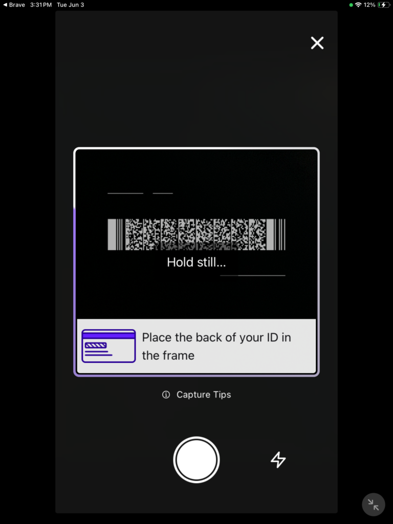 Place the front of your ID within the lines, then tap on the big white circle to snap that wonderful ID. You will be asked if you would like to use this or retake it.
