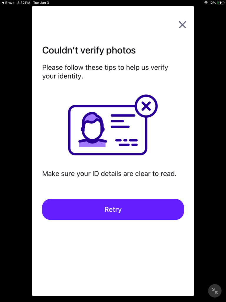 When you are ready tap on the button that says “ verifying identity”