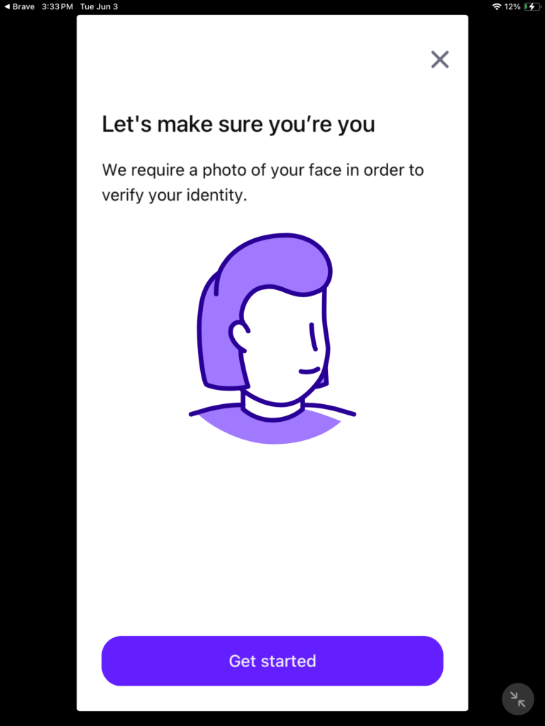 If the system accepted the front and back of your government issued photo ID, on the next step, we will be taking a selfie. Now press “Get Started”.