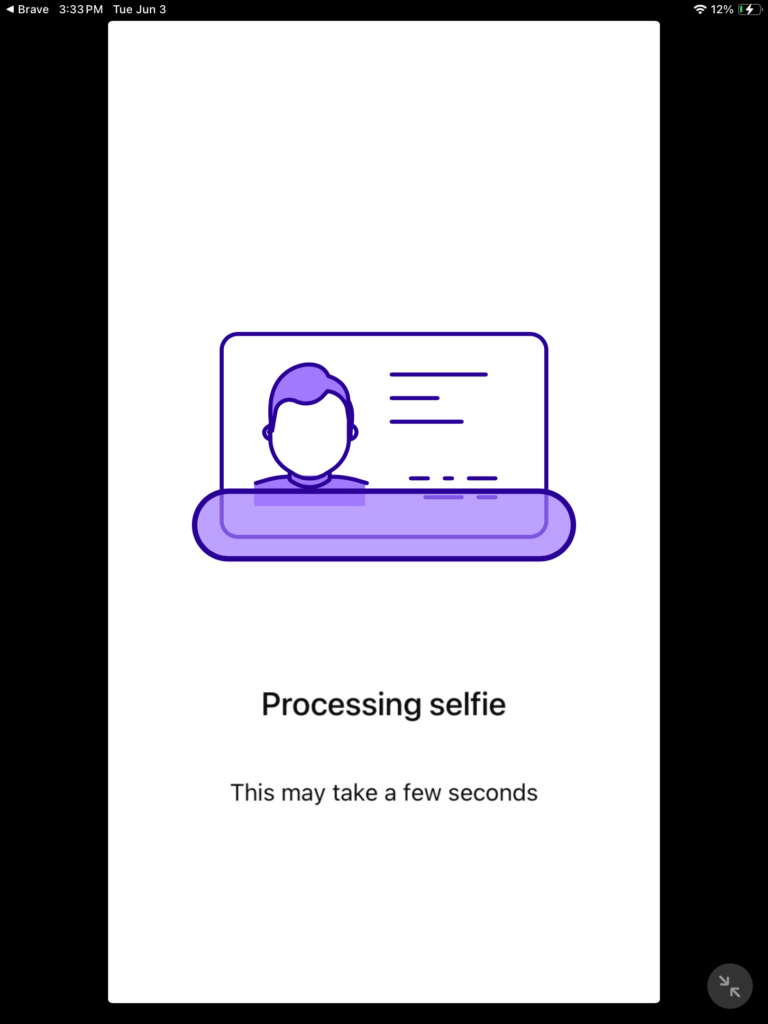 On the screen, not show here, but you will use your front camera and you wanna make sure that you are in the center of a circle, once you are in the center of the circle take the selfie and use the picture, then you should see the system is going to process this. When you take a selfie, you want to make sure that the background is rather kind of plain and not others are in the background as this may cause The selfie verification part to fail, and you will need to retake the selfie again.