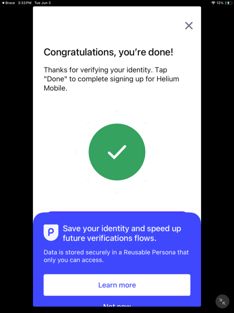CONGRATULATIONS! You have completed the verification process, kind of hidden but there you can tap on “Not now” to continue.