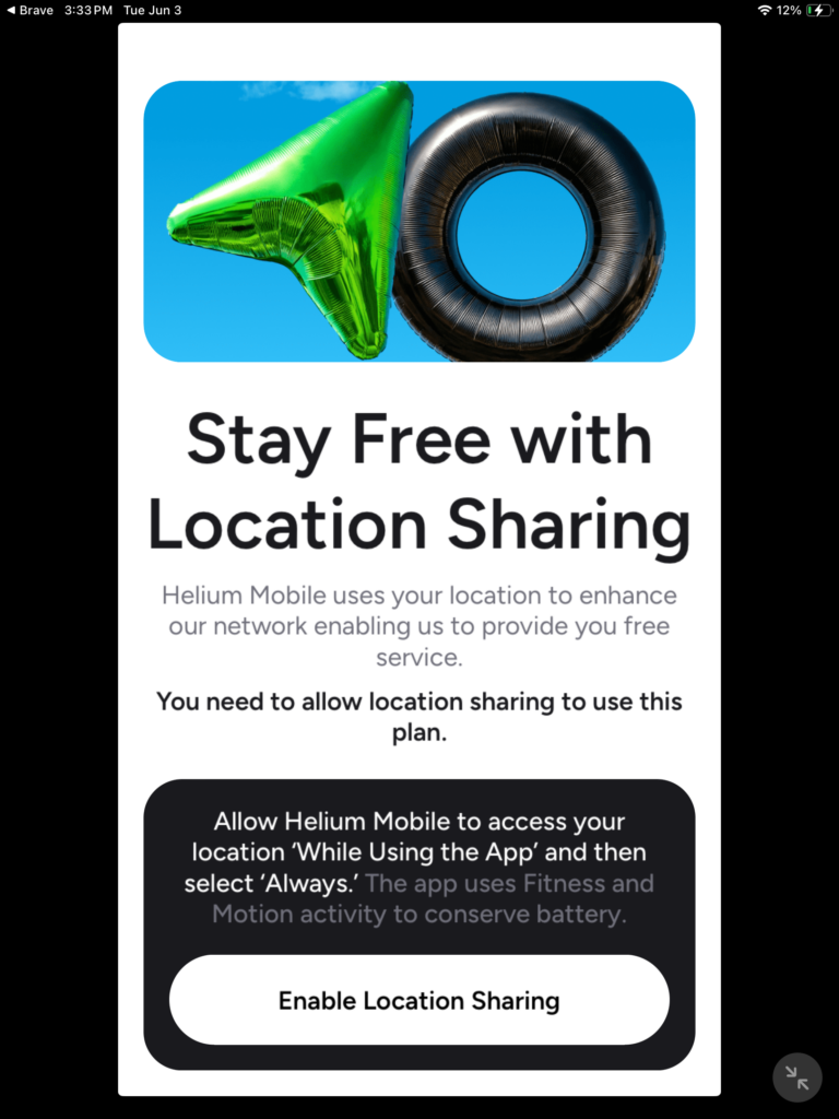 Access to location: Tap on “enable location sharing”. Not sure why they first tell you to select “while using the app”, then change the permission to “always”.