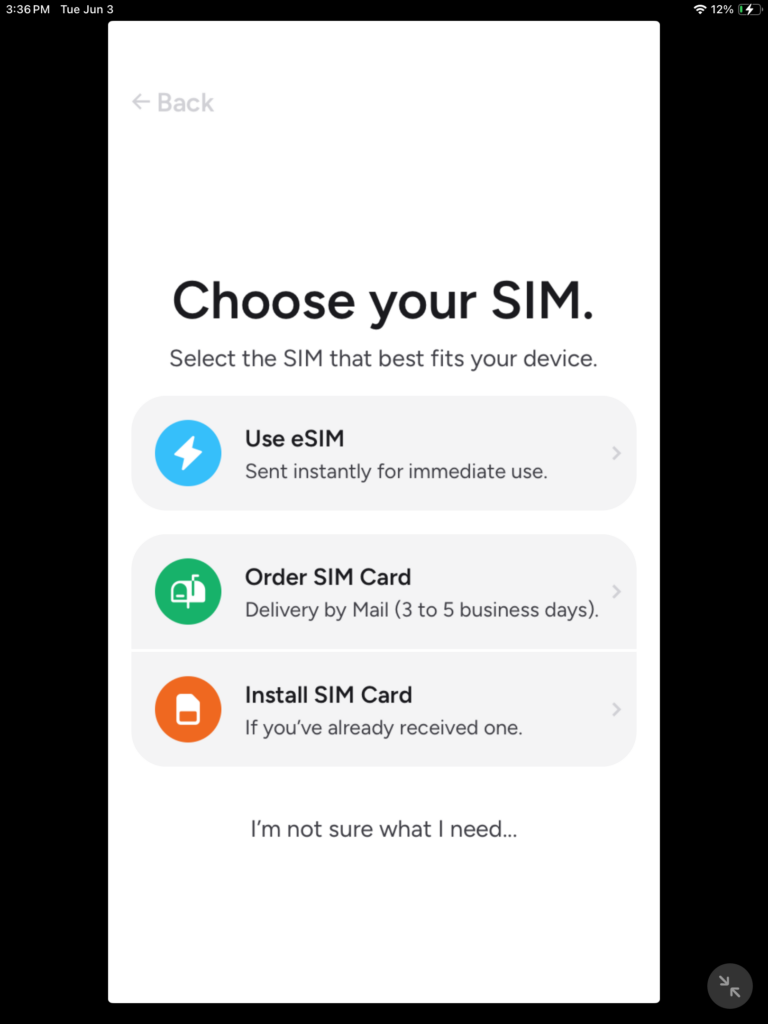 Since this is our first time we need to request a Sim card, tap on “ activate my SIM”