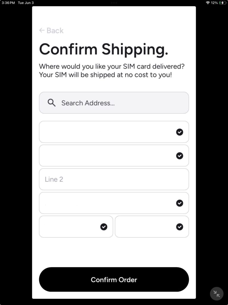 You will need to confirm the shipping address of where the Sim card should be shipped to, verify that the address is correct once you have verify that the address is correct, tap on “confirm order”.