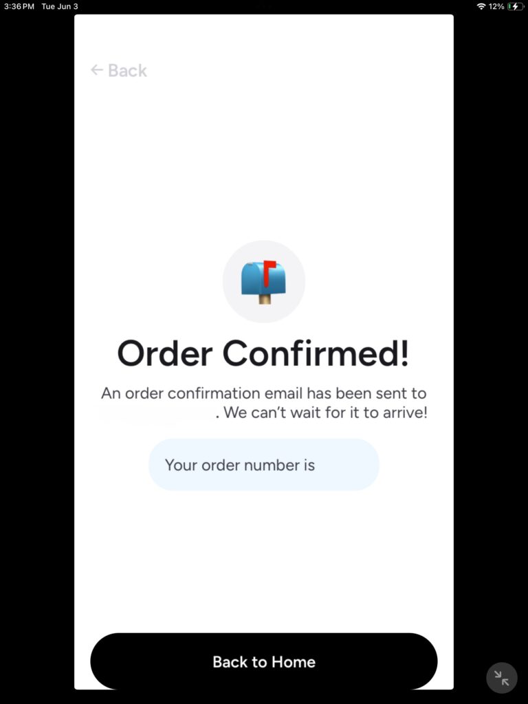 Now that you have received your order, confirmation screen, take note of your order number, Once you have Jada down your order number you can tap on “back to home”.
