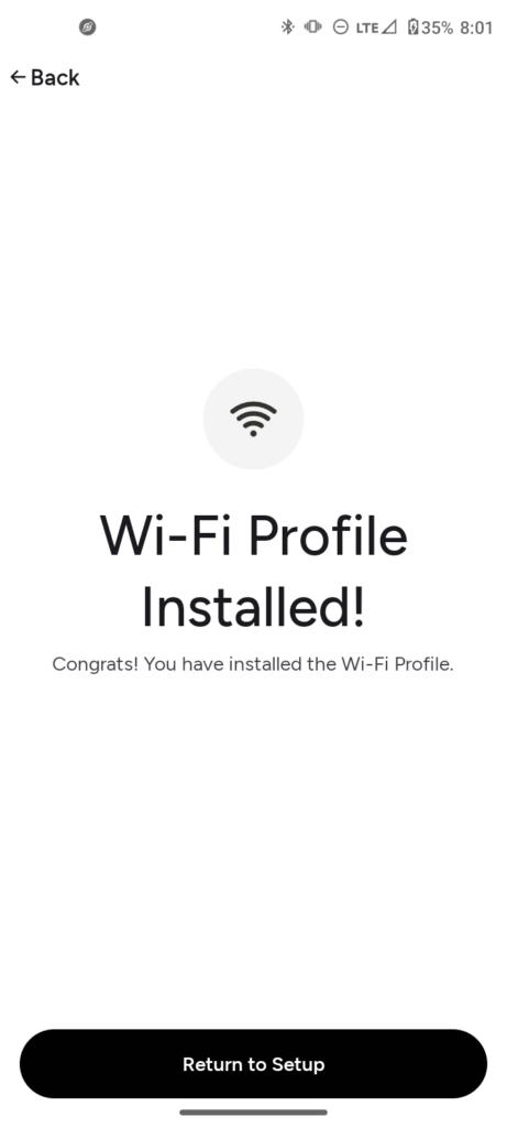 Now that you have installed the “Wi-Fi profile”, now tap on “Return to setup”.