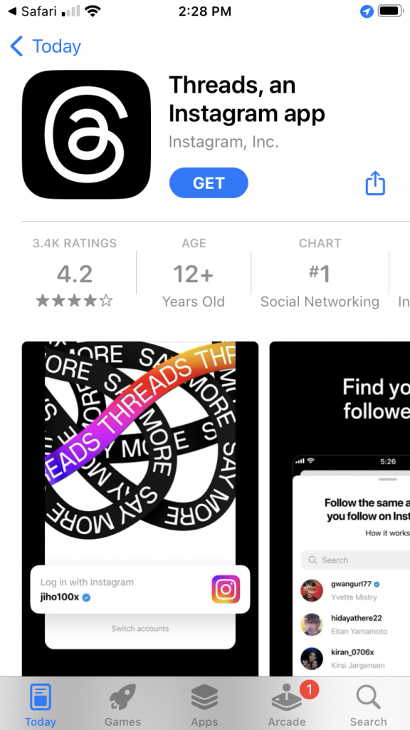 To signup for Threads goto http://itunes.apple.com/app/id6446901002 and click on “GET”.