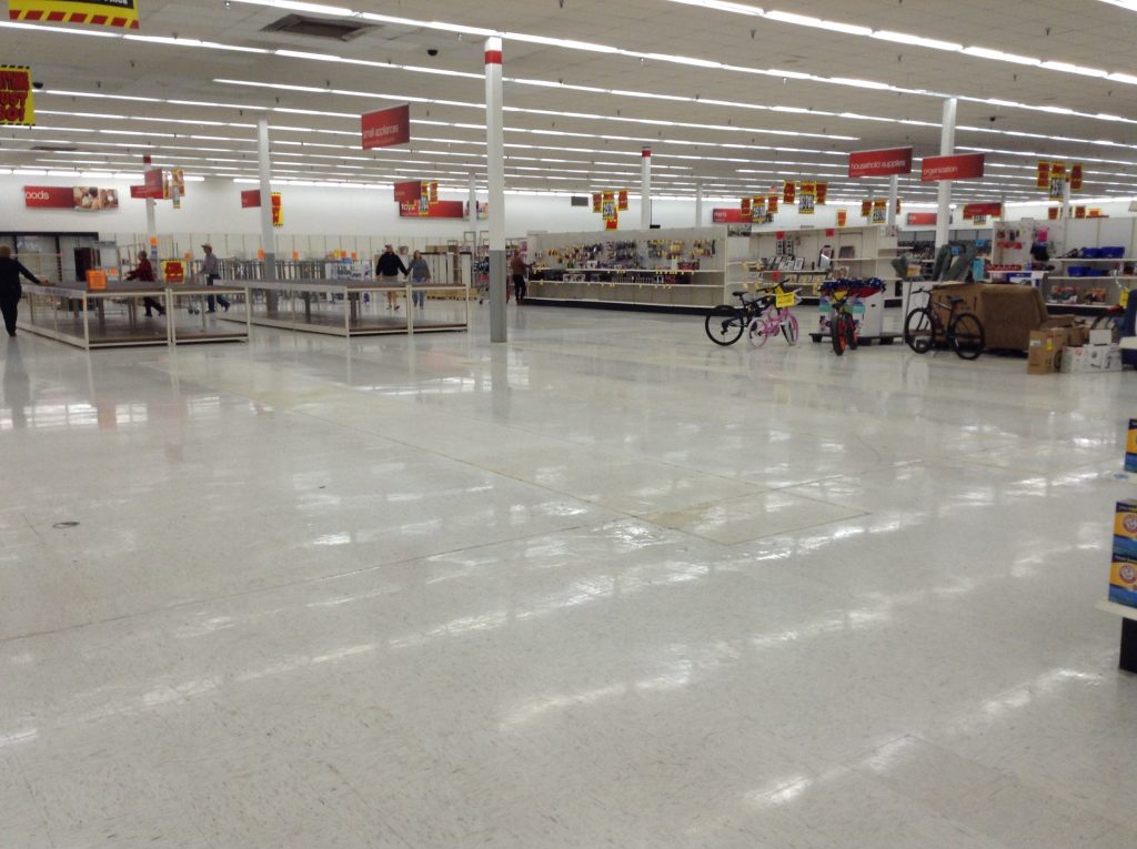 Once wear store shelves were all set up to create isles with merchandise on them, they’ve all been removed so the only remnants that isles ever existed is the discoloration on the floor at the Kmart in Tabb.